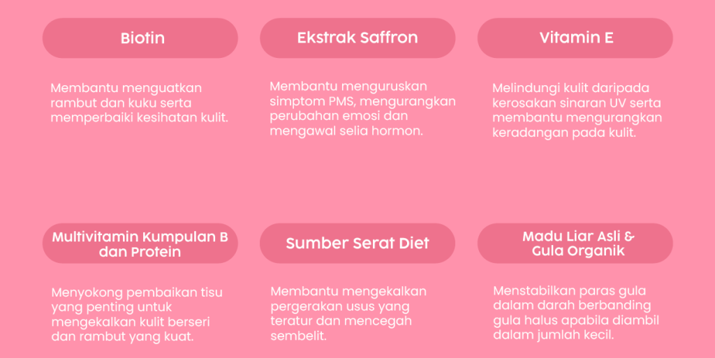 • Membantu menyokong keperluan pemakanan wanita yang sibuk dan aktif