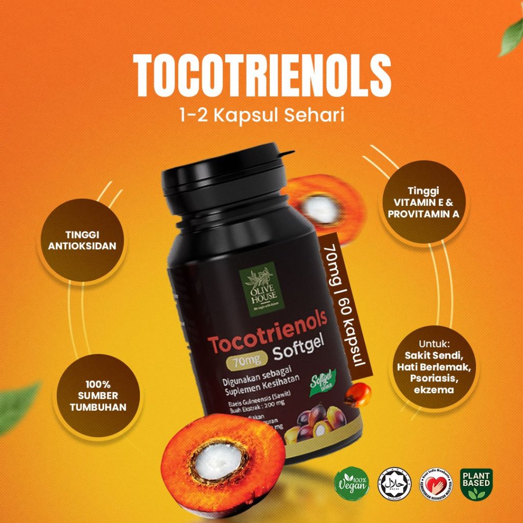 Dapatkan Single Bottle untuk Tocotrienols tanpa freegift disini. Diperbuat daripada minyak sawit merah. Mengandungi 60 kali ganda Antioksidan dari Vitamin E biasa.