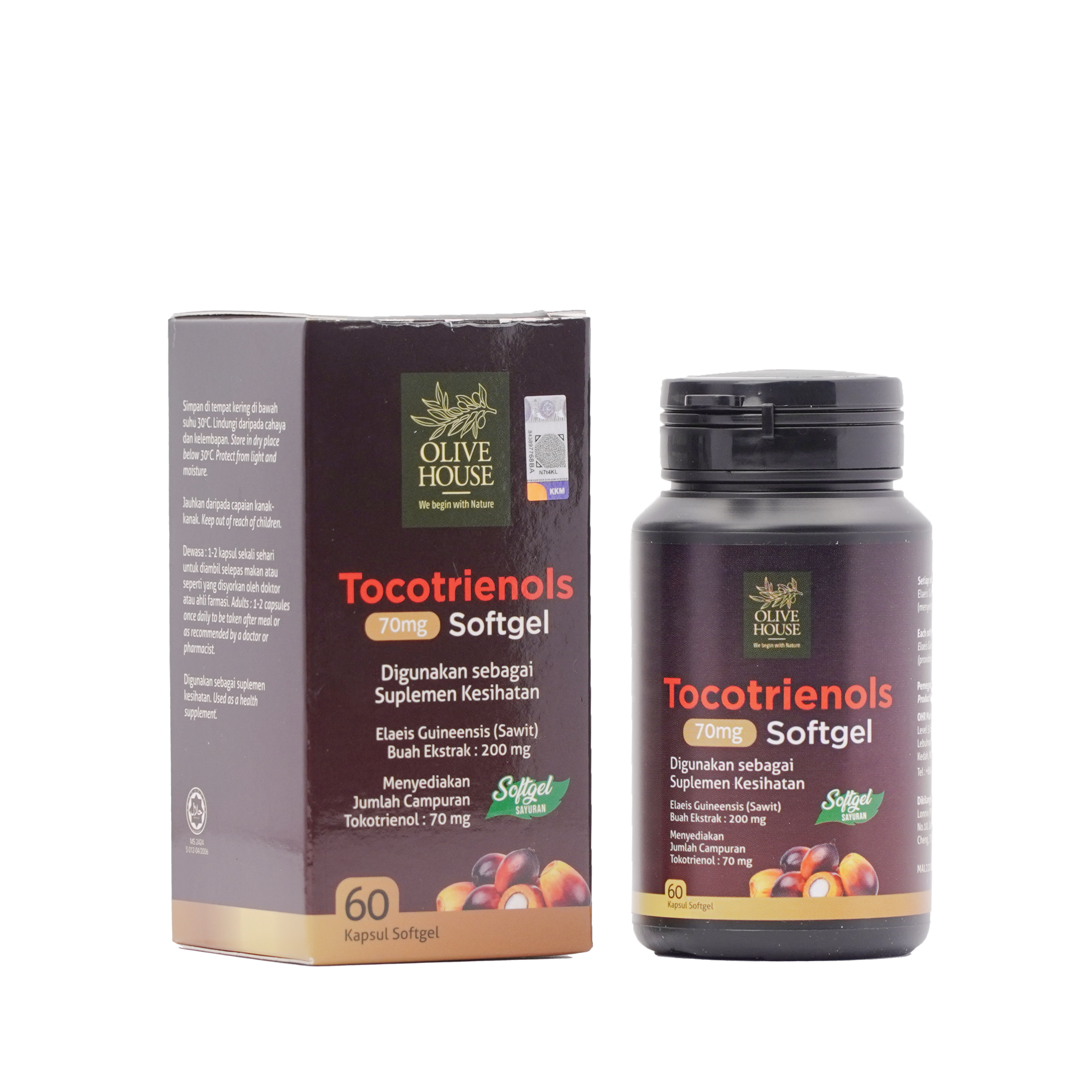TOCOTRIENOLS SOFTGEL dari Olive House ini merupakan suplemen makanan yang mengandungi derivatif vitamin E iaitu Tocotrienols sebanyak 70 miligram dalam satu kapsul/softgel. Tocotrienols ini adalah semulajadi dari minyak sawit merah dan di formulasi khas dengan kepekatan Tocotrienols yang tinggi.